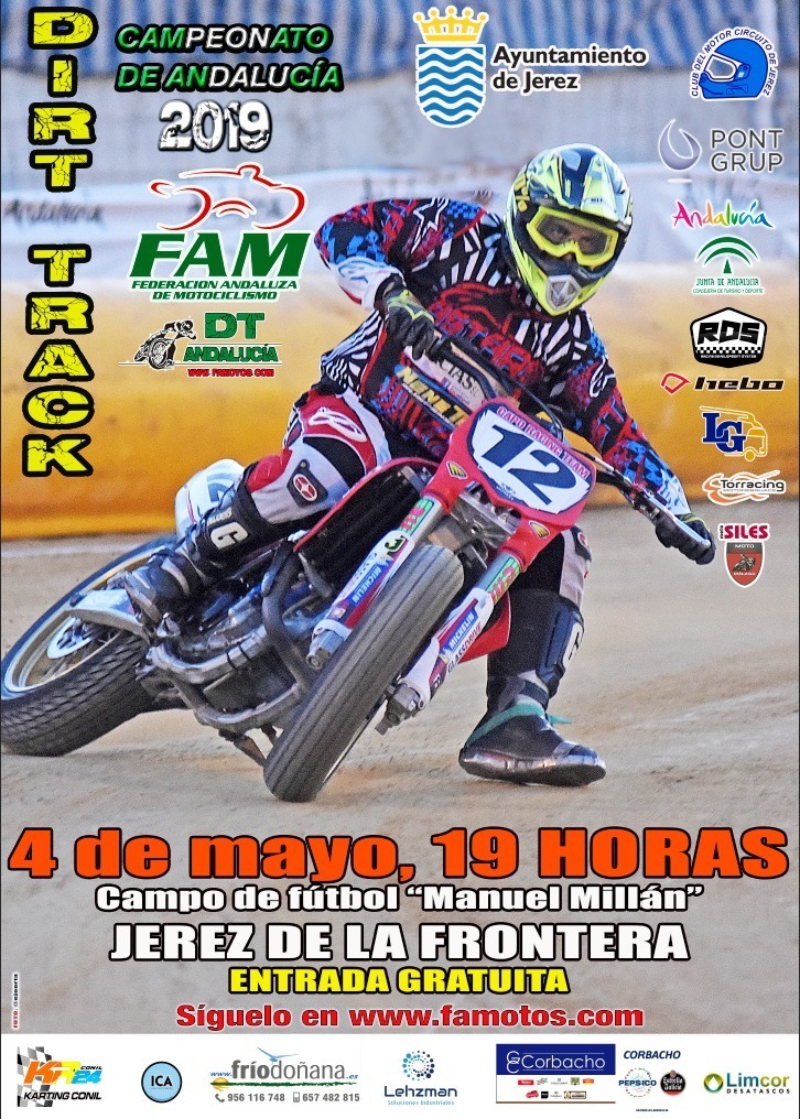 El Campeonato de Andalucía de Dirt Track 2019 empieza la edición de esta temporada el próximo sábado 4 de junio, a las 19 horas, en Jerez, coincidiendo con el Mundial de Motociclismo que se celebrará durante todo el fin de semana en el Circuito de Jerez-Ángel Nieto.