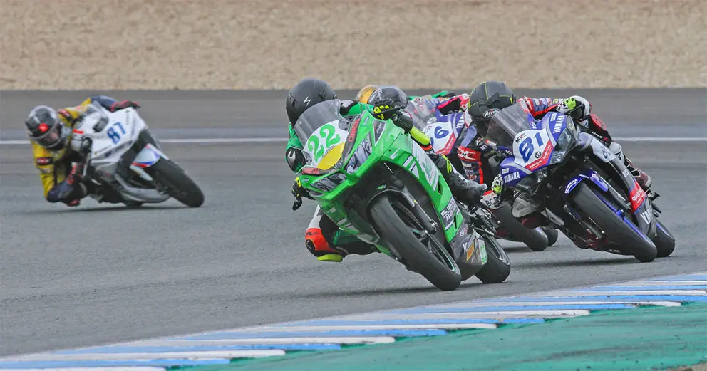 En la categoría de Supersport 300, el campeonato ya llegaba decidido a Jerez y el interés se centraba en ver si las Yamaha eran capaces de plantar cara a las Kawa en esta pista. Y así fue, hoy en Jerez por primera vez en la temporada, la victoria se la llevaba Yamaha.