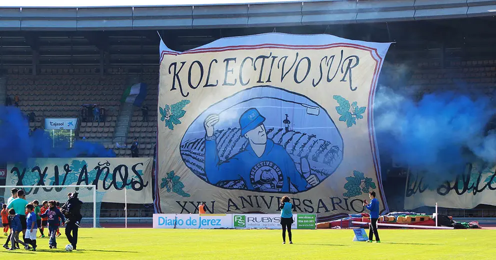 A las 17.45, debido al cambio de hora del encuentro, se realizará una marcha a pide desde la sede del Kolectivo Sur hasta la sede social del Xerez DFC con banderas y bufandas para dar ambiente a la previa del partido. Para ello, este grupo de aficionados ha puesto a la venta en la sede del club unas mini banderas para darle más colorida a la marcha.