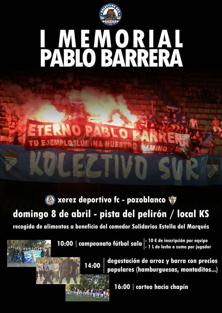 Con motivo de la disputa del encuentro de liga donde se enfrentarán el Xerez Deportivo FC y el CD Pozoblanco, el Kolectivo Sur ha organizado durante la jornada del domingo el I Memorial Pablo Barrera, uno de los socios más antiguos del grupo, que falleció el año pasado.