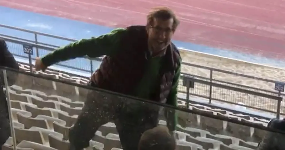 El padre del xerecista Goma la lía en la grada de Chapín