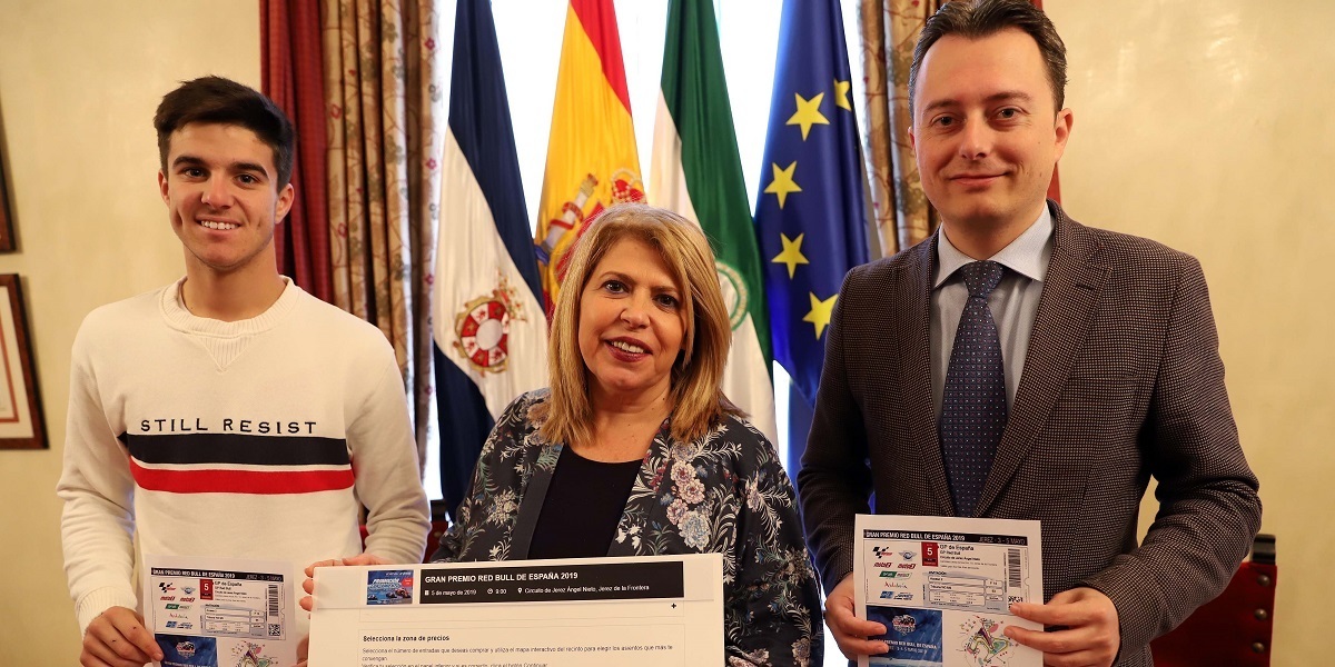 La alcaldesa, Mamen Sánchez, acompañada del piloto andaluz de Moto3, Marcos Ramírez, y el teniente de alcaldesa Santiago Galván, ha presentado la Zone Fan Club del piloto, Marcos Ramírez, sita en la grada W3 del Circuito de Jerez-Ángel Nieto, en concreto en los módulos 8 y 9, donde los seguidores del corredor mundialista podrán adquirir entradas y animarle en grupo en el Gran Premio de España de Motociclismo 2019.