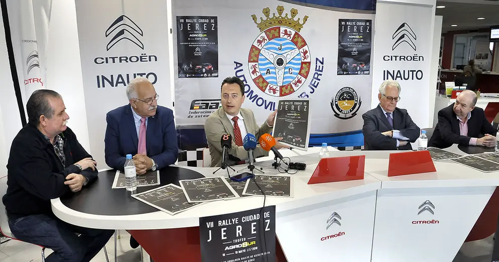 El Automóvil Club Jerez, miembro del Consejo Local del Motor de Jerez, ha presentado el cartel VII del Rallye Ciudad de Jerez-Trofeo Agrosur, una prueba puntuable para el Campeonato de Andalucía de Rallye de Asfalto 2018 y que se desarrollará por Jerez y la Sierra de Cádiz los próximos días 18 y 19 de mayo. El acto, que se ha desarrollado en el concesionario Inauto (Citroën), ha contado con la asistencia del teniente de alcaldesa de Economía, Hacienda y Planes Especiales, y vicepresidente de Cirjesa, Santiago Galván; el presidente de la Federación Andaluza de Automovilismo (FAA), Manuel Alonso, el presidente del Automóvil Club Jerez, Tomás Rivero, y Francisco Pérez, gerente de Inauto.