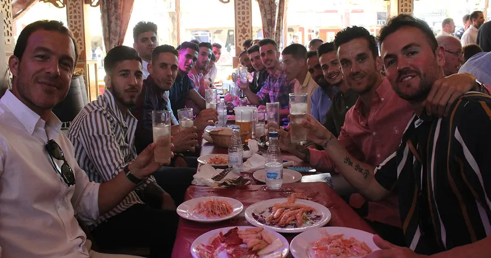 El Xerez Deportivo FC continúa de fiesta y en la jornada del martes 8 de mayo celebraba su comida en la caseta xerecista. Jugadores, técnicos, directivos y trabajadores del club han disfrutado de un almuerzo en el que han podido repasar e intercambiar impresiones de la que está siendo una temporada plagada de éxitos en todas las categorías y secciones y que culminaba el pasado domingo con la fiesta del ascenso a Tercera División.