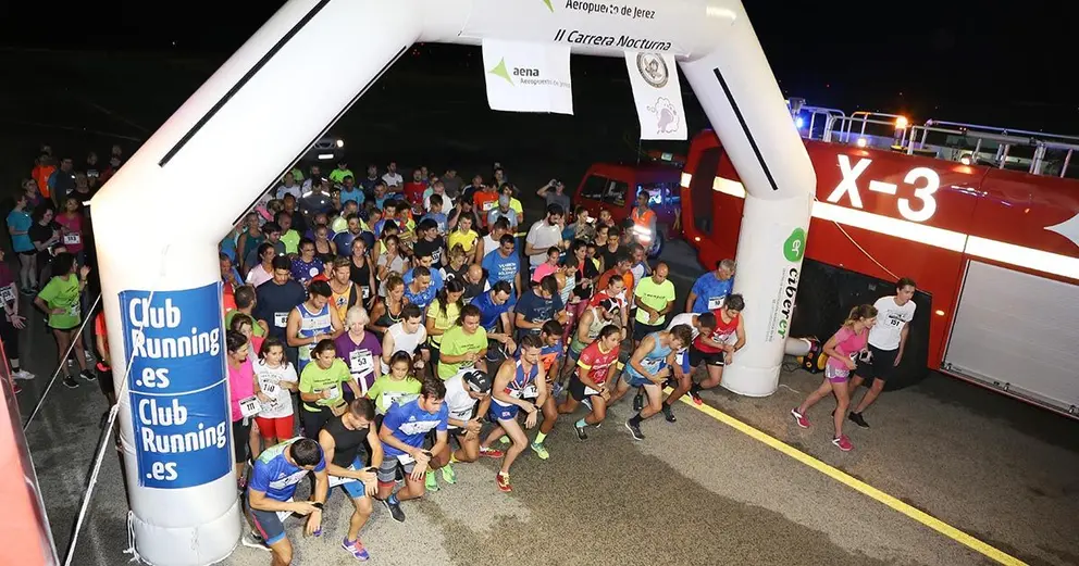 El Aeropuerto de Jerez celebró a las 24.00 horas de ayer su II Carrera Nocturna con fines benéficos, en la que se dieron cita cerca de 200 personas, entre empleados de las instalaciones y corredores de fuera.