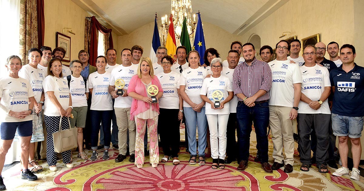 Con este acto, la alcaldesa ha reconocido la labor del club jerezano a lo largo de estos años y sobre todo en la presente temporada, en la que ha logrado ser Campeón de España Máster en la tres categorías del XXX Campeonato de España Open Máster de verano, que se ha disputado del 11 al 14 de julio en Tarragona.