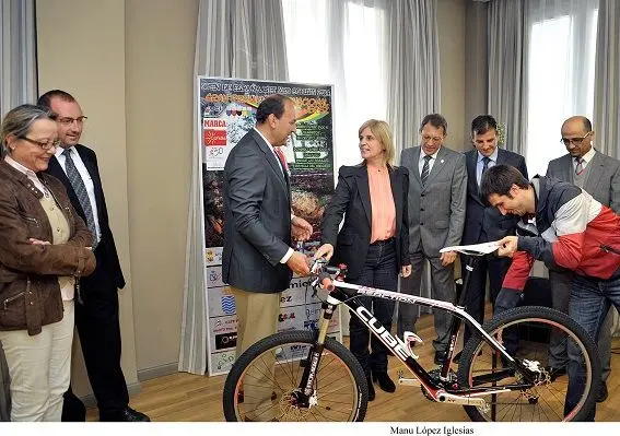 La alcaldesa de Jerez, María José García-Pelayo, junto al presidente del C.C. Mountain Bike de Jerez, Adolfo Rodríguez; el vicepresidente de la Real Federación Española de Ciclismo y presidente de la Federación Andaluza, Manuel Rodríguez, han presentado hoy el Open Mountain Bike Ciudad de Jerez, en el Hotel Montecastillo. Este evento deportivo se celebrará el sábado, día 5 de abril, en un circuito en el centro de la ciudad con salida y llegada a la plaza del Arenal y, el domingo, día 6 de abril, en el Parque de Las Aguilillas en Estella del Marqués.