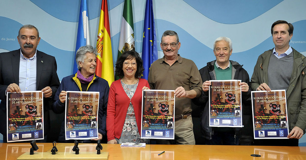 La delegada de Igualdad, Acción Social y Medio Rural, Carmen Collado, acompañada de la presidenta de Siloé, Rosalía Bejarano, del presidente del Club Nazaret, Manuel García Perdigones, y del maestro de artes marciales Manuel Caballero, ha presentado la XI Gala Solidaria de Artes Marciales que se celebrará el próximo domingo 18 de noviembre, partir de las 10 horas, en el salón de Los Espejos del club jerezano a beneficio del proyecto Lar Siloé de Mozambique.