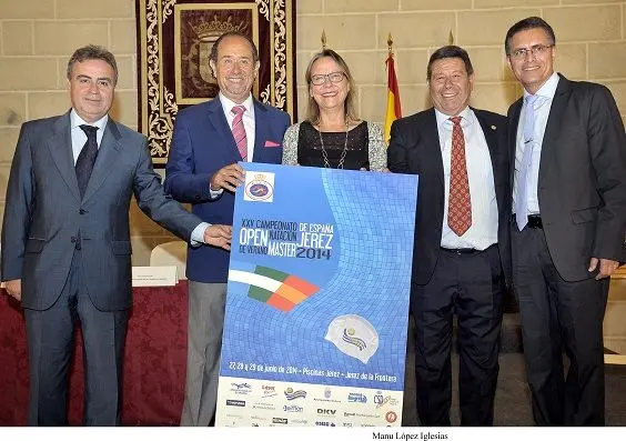 La delegada de Medio Ambiente y Deportes, Felisa Rosado y el delegado de Turismo, Cultura y Fiestas, Antonio Real, han asistido en los Claustros de Santo Domingo, a la presentación del cartel del Campeonato de España Natación Máster, que se celebrará en Piscinas Jerez, los días 27, 28 y 29 de junio. Ambos han estado acompañados por el vicepresidente de la Real Federación Nacional de Natación, Juan Villota y por el presidente del Club Natación Jerez, Manuel Mestre que “han apostado por celebrar en nuestra ciudad un campeonato de de tanta relevancia”