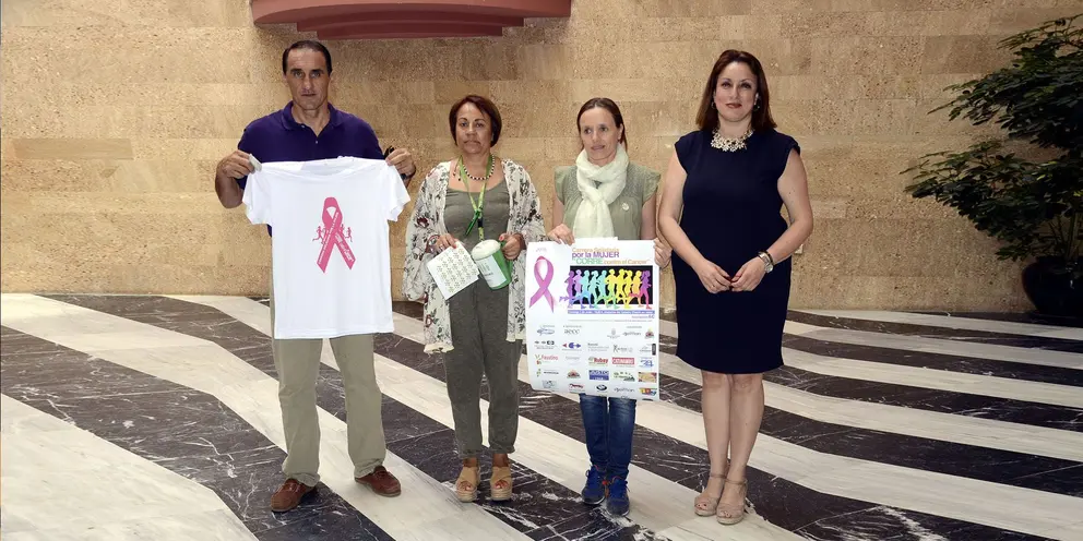 La teniente de Alcaldesa de Empleo, Recursos y Deportes, Laura Álvarez, ha presentado hoy en el Ayuntamiento la Carrera Solidaria 'Por la mujer, corre contra el cáncer' que se celebrará el próximo domingo, día 5 de junio a partir de las 10 horas con salida y meta en el Estadio Municipal Chapín. Han asistido a la comparecencia junto a la teniente de Alcaldesa la directora de Clínica Beiman, Silvia del Ojo; la presidenta de la Asociación Española de Lucha Contra el Cáncer en Jerez, Conchi Fernández Cid y el presidente del Club Atletismo Beiman, Francisco J. Medina.