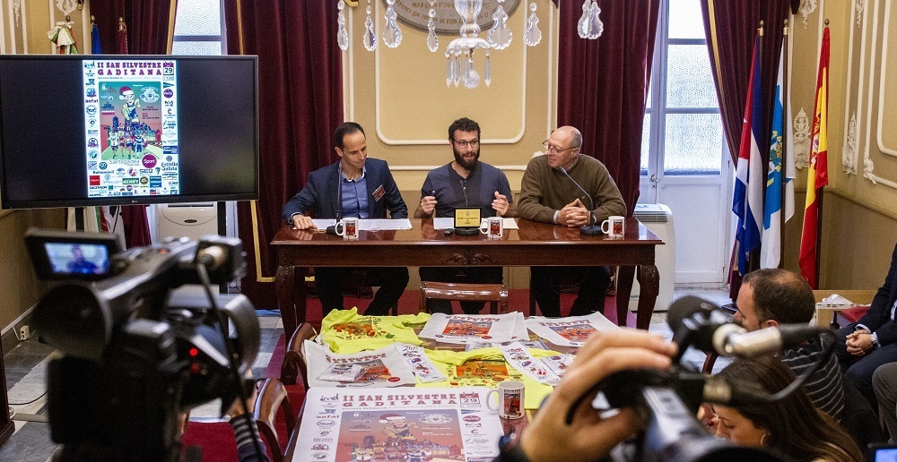 El concejal de Deportes, Adrián Martínez de Pinillos, el presidente del Club Olimpo Manuel Jesús Nieto y el promotor de la prueba y secretario del club Raúl Plazuelo, han presentado la II San Silvestre Gaditana que recorrerá el próximo 29 de diciembre el perímetro del Casco Histórico.