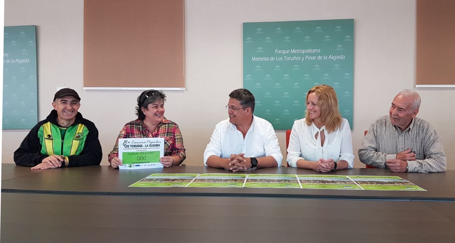Representantes del Ayuntamiento de El Puerto, el Parque Metropolitano Marisma de Los Toruños y Pinar de la Algaida y del Club de Atletismo Alcanatif han presentado la 8ª edición de la Carrera Popular “Toruños-Algaida”, que se celebrará en el espacio natural del que toma su nombre, el próximo sábado día 6 de mayo, en beneficio de la residencia de mayores Joaquina de Vedruna, de Puerto Real.