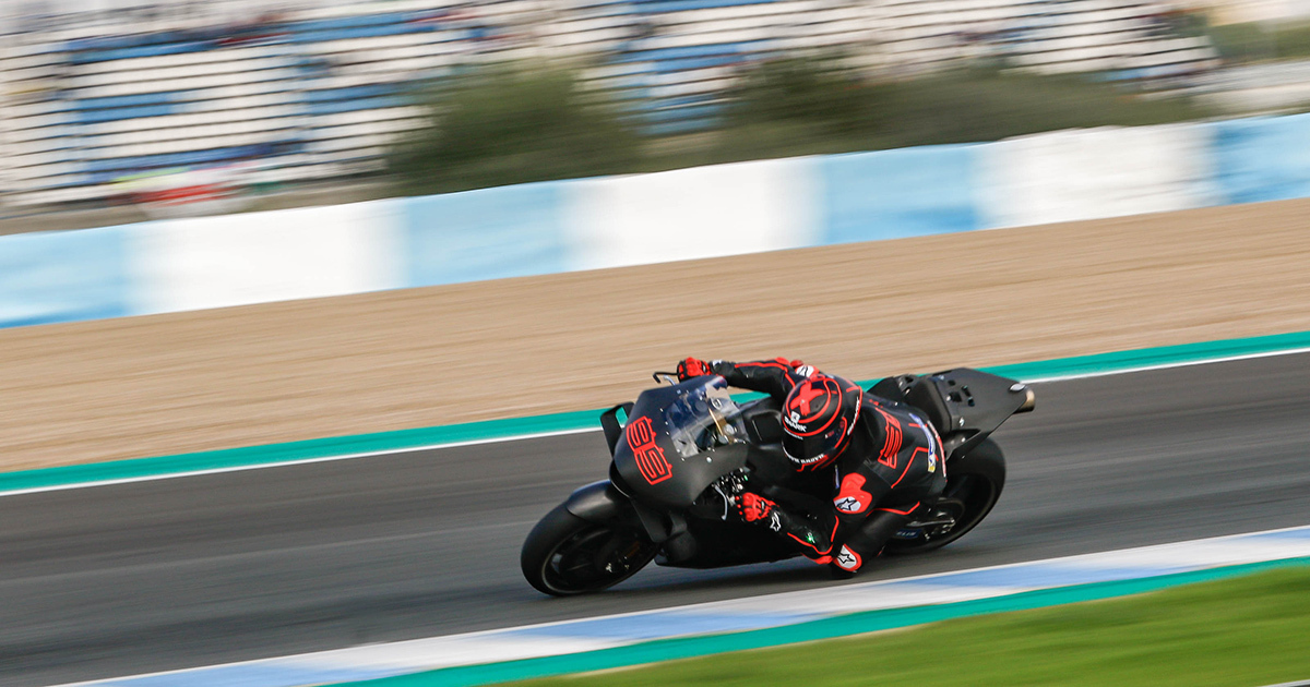 Como en la primera jornada del Test Oficial MotoGP del día de ayer, la actividad en pista jerezana no comenzaba hasta pasadas las 11.00 horas cuando el sol ya había incrementado la temperatura del asfalto que estaba muy frio cuando el semáforo dio inicio a la sesión. De cualquier forma, hoy de nuevo han encontrado buenas condiciones climáticas, si bien, la temperatura ha sido en general algo más baja que en el día de ayer y esto se hizo notar en la pista que en las horas centrales no pasó de los 22-23º cuando en la jornada anterior llegó a alcanzar los algo más de 27 grados. A pesar de ello, la diferencia entre los registros de ayer y los de hoy ha sido exigua. Tan sólo milésimas separaron el mejor crono de Petrucci ayer del marcado hoy por el japonés Nakagami.