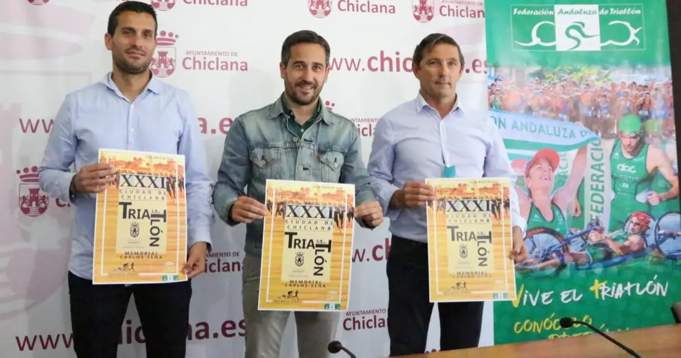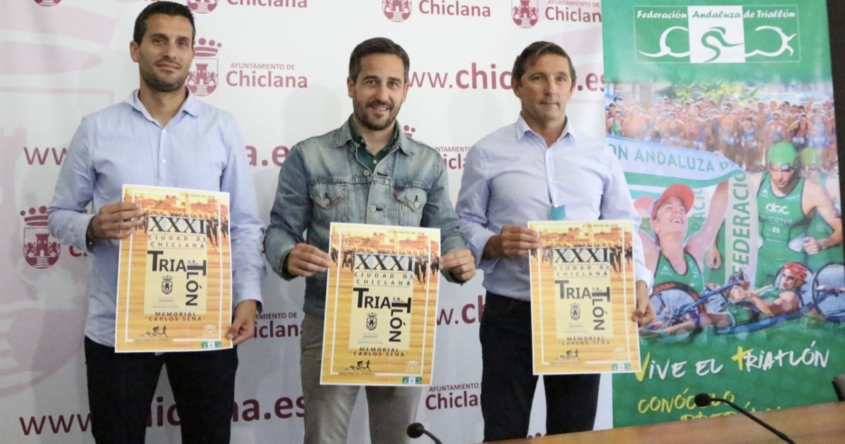 El delegado municipal de Deportes, José Manuel Vera; el presidente de la Federación Andaluza de Triatlón, Pablo Castilla, y el delegado en Cádiz de la Federación Andaluza de Triatlón, Javier Velázquez, han presentado la trigésimo primera edición del Triatlón Ciudad de Chiclana ‘Memorial Carlos Sena’, que se celebrará el próximo domingo. “Esta edición será muy especial, porque será la primera con una dedicación muy merecida, ya que desde este año esta prueba también llevará el nombre de ‘Memorial Carlos Sena’”, ha explicado el delegado, que también ha recordado que “Carlos Sena fue uno de los principales culpables de que el triatlón en Chiclana cumpla 31 años, siendo el más antiguo de España que celebra de forma ininterrumpida, y fue uno de los grandes impulsores y valedores del deporte en la ciudad. Es por ello que este reconocimiento es más que merecido”.