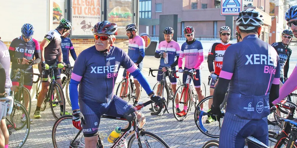 Desde hace cuatro años se reúnen un nutrido grupo de fieles ciclistas, ataviados con maillots de azulón y rosa, en la avenida de la Universidad, junto al restaurante de comida rápida 'Burger King', con solo un sueño: pedalear por la campiña jerezana. Son los miembros de XerezBike.