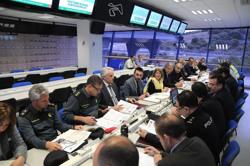 El delegado del Gobierno ha presidido hoy en el Circuito de Jerez la reunión del comité asesor del Plan de Emergencias por el Gran Premio de Motociclismo de Jerez acompañado del subdelegado del Gobierno en la provincia de Cádiz, Agustín Muñoz Martín, en representación de los organismos miembros natos en este comité asesor, y de la alcaldesa de Jerez, Mamen Sánchez.