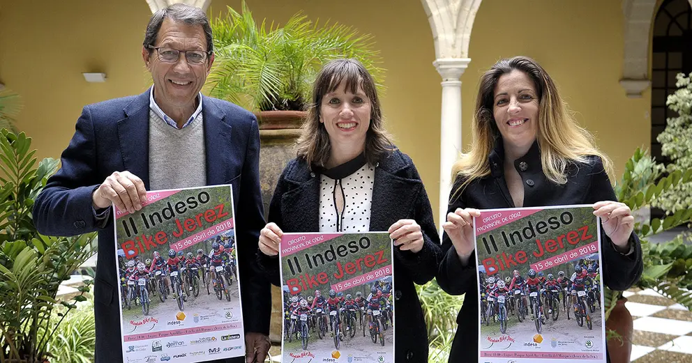 La teniente de alcaldesa de Empleo, Recursos y Deporte, Laura Álvarez, ha asistido a la presentación del cartel del II Indeso Bike Jerez, organizado por el Club Ciclista Mountain Bike Jerez, que preside Manuel Rodríguez (presidente asimismo de la Federación Andaluza de Ciclismo) y que se celebrará en el Parque Forestal de Las Aguilillas el próximo domingo 15 de abril, con una participación de más de 250 ciclistas de todas las edades.