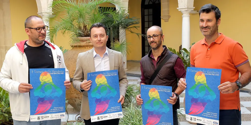 El teniente de alcaldesa de Economía, Hacienda y Planes Especiales, Santiago Galván, ha presentado hoy, debido a motivos de agenda de causa mayor de la teniente de alcaldesa de Empleo, Recursos y Deportes, Laura Álvarez, y junto a Marcos Gordillo, presidente del DKV Jerez Baloncesto; José María Martín, presidente de la Asociación Deportiva Zona Oeste y Alfredo Benítez, en representación de Zootécnica Jerezana (principal patrocinador del evento) el II Torneo de Baloncesto 'La Vendimia' memorial Mari Paz León, que se celebrará el próximo sábado 23 en el Palacio Municipal de Deportes con el concurso de en torno 800 jugadores de distintas categorías.