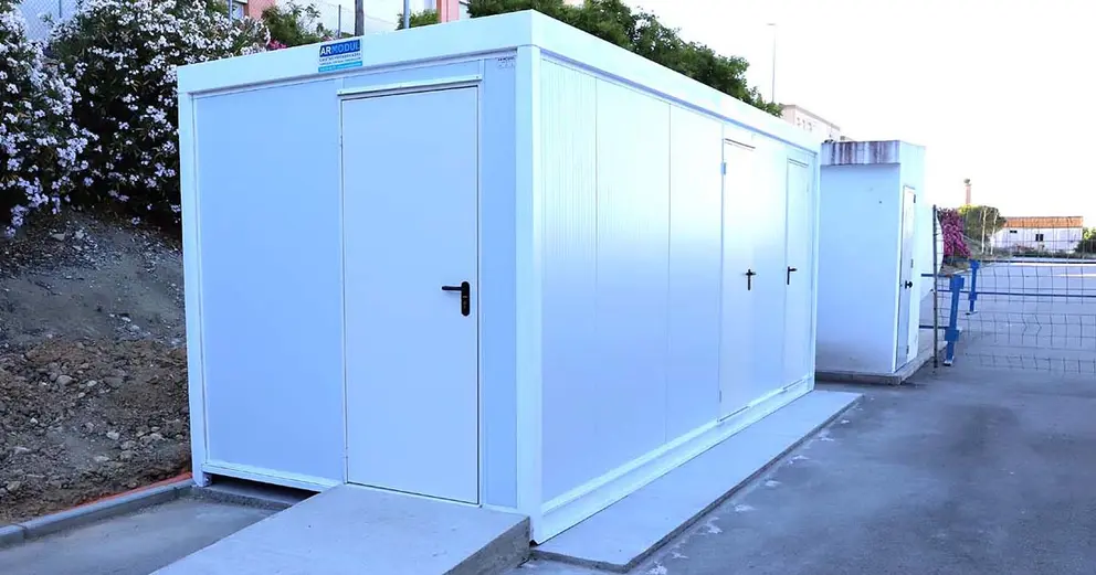 La ubicación de tal módulo se ha realizado en la parte trasera del edificio de vestuarios y zona de oficina de celadores, con una posición que permite el tránsito de vehículos de mantenimiento de la instalación y priorizando la accesibilidad para personas con movilidad reducida.