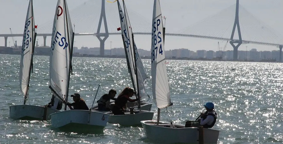 El viento se ha hecho de rogar en aguas de la bahía gaditana retrasando el comienzo del III Trofeo de la Hispanidad de Optimist, prueba que reúne en El Puerto de Santa María a casi 300 regatistas de cinco comunidades en liza por los títulos Sub 16 y Sub 13.
