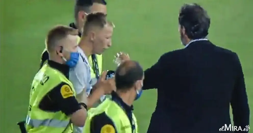 Partido a puerta cerrada... ¡Y salta un espontáneo sin mascarilla!