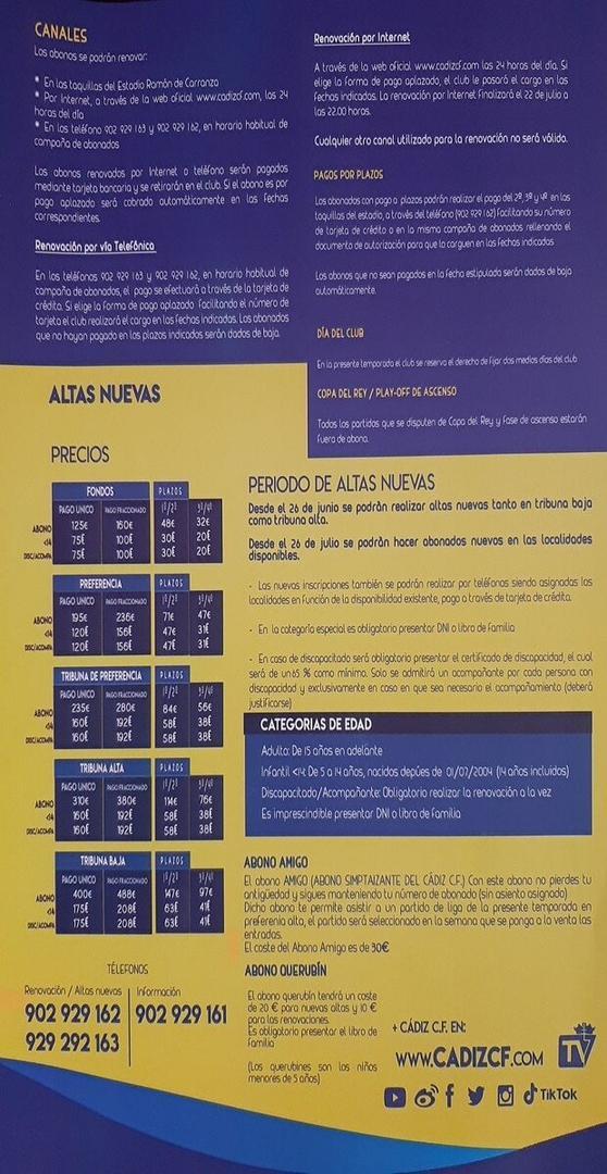 El Cádiz Club de Fútbol ha dado a conocer su campaña de abonados para la próxima temporada