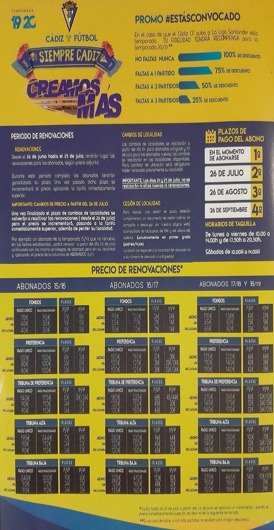 Precios, fechas y horarios de la campaña de abonados del Cádiz