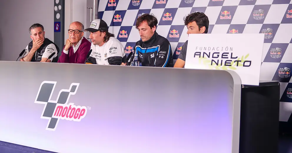 Al mismo tiempo que los jóvenes pilotos de la Red Bull Rookies Cup corrían por el trazado jerezano, se celebraba la presentación de la Fundación Ángel Nieto. Un proyecto que respira la ilusión de la familia del campeón español y cuenta con el apoyo de dos grandes influencias del mundo del motor como son Carmelo Ezpeleta, CEO de Dorna Sport y Jorge Martínez Aspar, expiloto español de motociclismo y propietario del equipo Ángel Nieto Team.