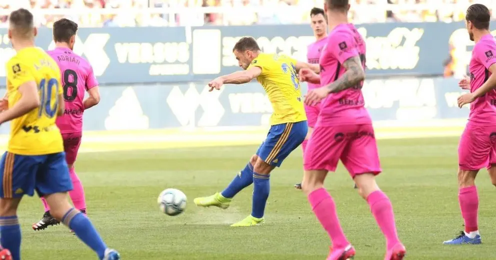 A los cadistas, muy trabados en la creación por la presión rival, les costaba pisar área contraria. No fue hasta el minuto 35 cuando un centro de Salvi que Malbasic cabeceó alto, llevó el primer 'uy' a la poblada grada de Carranza. Aunque la más clara sería una dejada de Álvaro Giménez a Salvi dentro del área que lanzó alto.
