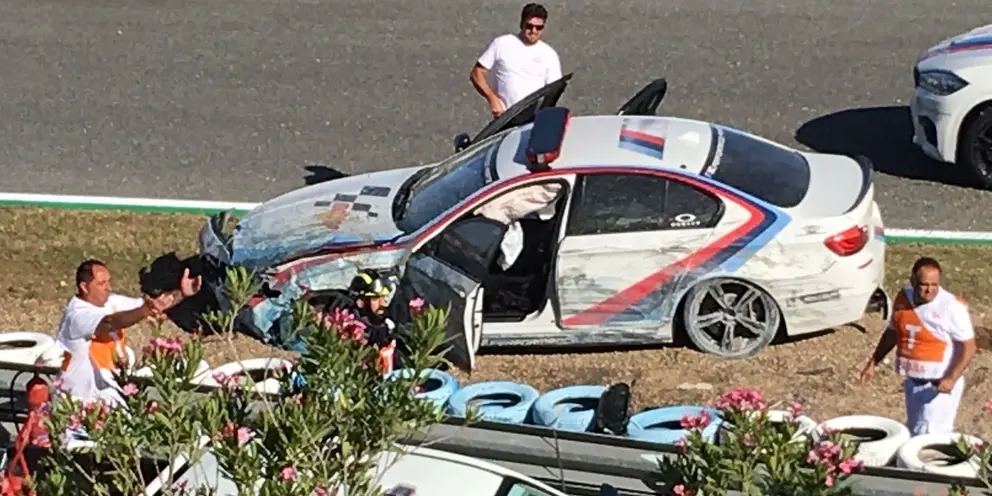 El accidente ocurrió tras la celebración de los warm up matinales, cuando el BMW M4 CS conducido por Franco Uncini, responsable de seguridad para los pilotos en el Campeonato del Mundo, entró en la pista para reconocerla antes de la celebración de la carrera de Moto3.