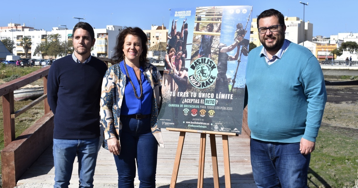 La delegada de Deportes, Maite Lebrero; el diputado provincial y concejal de Inlcusión y Políticas Sociales, Jaime Armario, y el director de la prueba, Javier Vázquez, han presentado este mediodía una nueva edición de la Basilisk Wild Race, una carrera de obstáculos que ya se celebró el pasado año en San Fernando y que volverá al entorno de La Magdalena y el Sendero del Carrascón el próximo sábado 16 de marzo. En la organización de este evento, a cargo de Edificarte Eventos, colabora el Ayuntamiento de San Fernando y la Diputación Provincial de Cádiz.