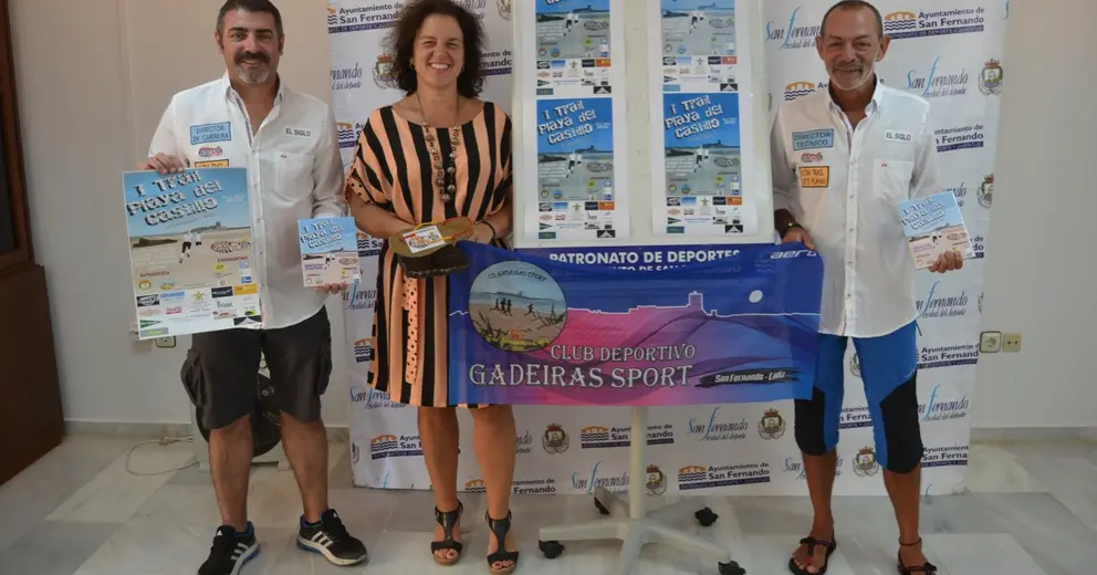 La delegada municipal de Deportes, Maite Lebrero, el director técnico de la I Trail Playa del Castillo, José Manuel Rebollido y el representante de Club Deportivo Gadeiras Sport, Juan Carlos Aguilar, han presentado esta mañana en el patronato de deportes la I Trail Playa del Castillo, que está organizada por el Club Deportivo Gadeiras Sport y el Patronato Municipal de Deportes y tendrá lugar el próximo domingo 2 de Septiembre.