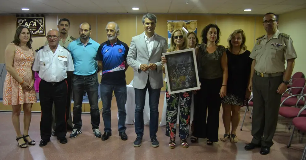 El primer teniente de alcaldesa, Fran Romero; la delegada municipal de Deportes, Maite Lebrero, y la Presidenta de AFA Vitae, Mari Pepa Rodríguez Castañeda, han presentado hoy la XIV Carrera Popular Nocturna Día Mundial de Enfermos de Alzheimer 2018, que se celebrará el próximo sábado 6 de octubre. Este evento está organizado, como es habitual, por la Asociación AFA Vitae, el Club de Atletismo Carmona Páez y el Patronato Municipal de Deportes. El acto de presentación también ha contado con la presencia del comandante del Racta-4 Agustín Aedo, del coronel del CEFOT-2 José María Jiménez y de Pedro Fernández, representando al Club de Atletismo Carmona Páez.