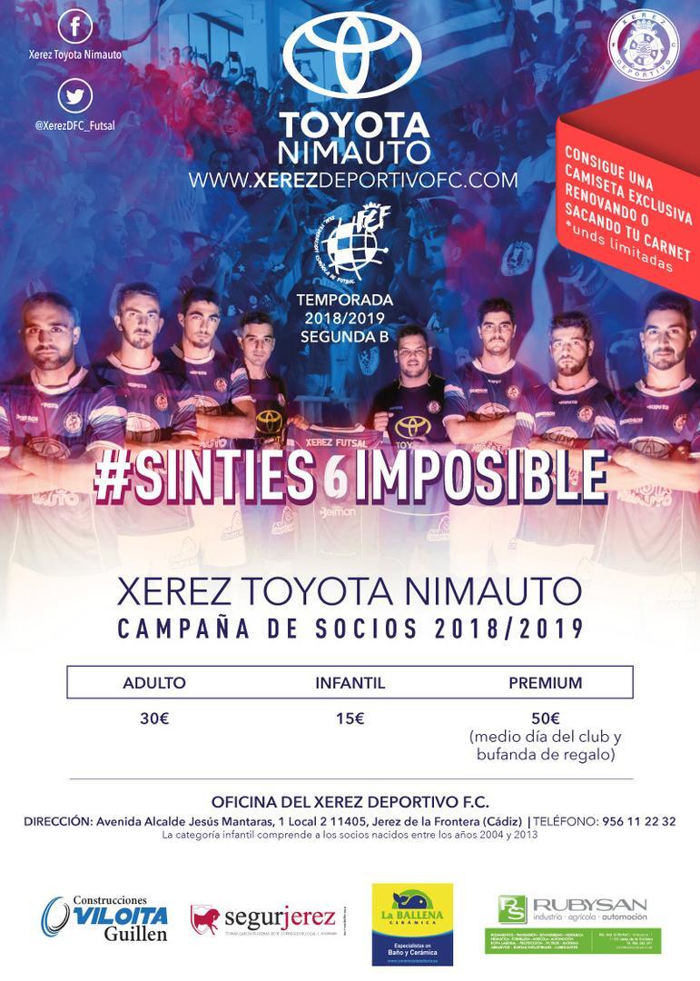 El Xerez Toyota Nimauto ha presentado este martes 19 de junio su campaña de abonados de cara a la temporada 2018/19, donde el club participará en el Grupo V de Segunda División B. La temporada recién terminada fue histórica, ya que el club logró el título de liga, pero finalmente no pudo conseguir el ascenso de categoría.