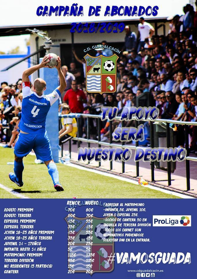 El Club Deportivo Guadalcacín ha presentado su nueva campaña de abonados bajo el lema "Tu apoyo será nuestro destino", animando a la afición a acompañar al equipo un año más en Tercera División.