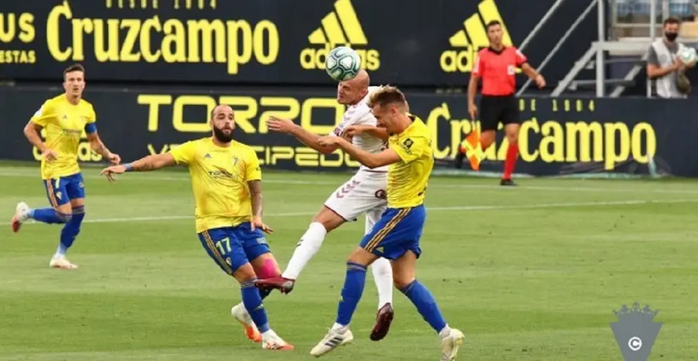 El Cádiz CF comenzó el encuentro apretando y libre de toda presión. Los amarillos se fueron arriba desde el primer momento y en una vistosa jugada de ataque hizo gol que acabó siendo anulado por fuera de juego de Choco Lozano en el remate.