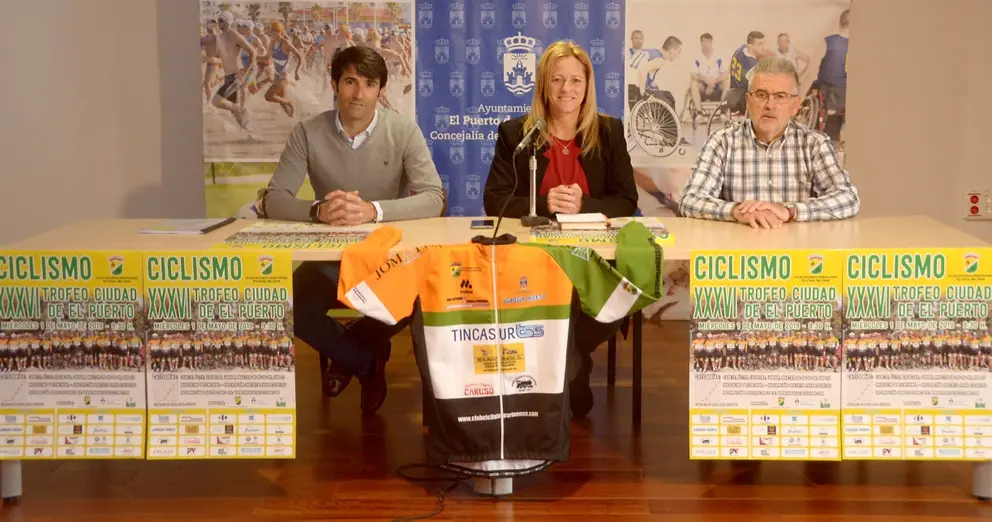 La Concejala de Deportes, Ana María Arias presentó ayer la XXXVI edición del Trofeo Ciudad de El Puerto junto con el presidente y el secretario del Club Ciclista Portuense, Álvaro García y Juan José García, respectivamente.
