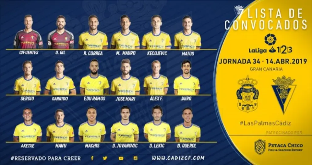 A la conclusión de la sesión de trabajo de este sábado día 13 de abril, el entrenador amarillo ha dado a conocer la siguiente convocatoria formada por 18 futbolistas: