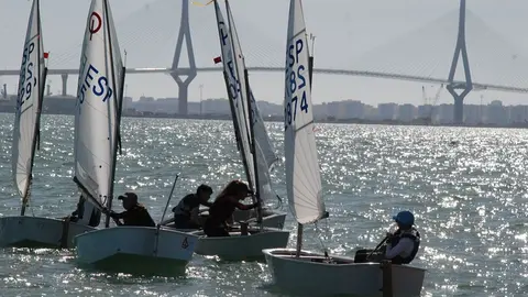 Más Deporte Optimist arranca con poco viento y mucha igualdad en la bahía gaditana El MIRA 13/10/18 Los andaluces Roberto Aguilar y Adriana Serra, y los baleares Marc Mesquida y la bicampeona del mundo María Perello, primeros líderes