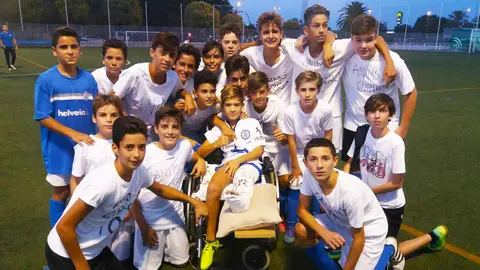 Fútbol Emotivo gesto de los jugadores del Infantil del Xerez DFC con su compañero Curro El MIRA 24/9/17 El futbolista, lesionado de gravedad la pasada semana, acudió en silla de ruedas a presenciar el choque de su equipo