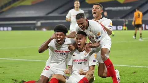Fútbol El Sevilla FC vence y sueña con la Europa League El MIRA 12/8/20 Un gol del argentino Lucas Ocampos en los últimos minutos acaba con la resistencia de los Wolves y cita al Sevilla con el Manchester United