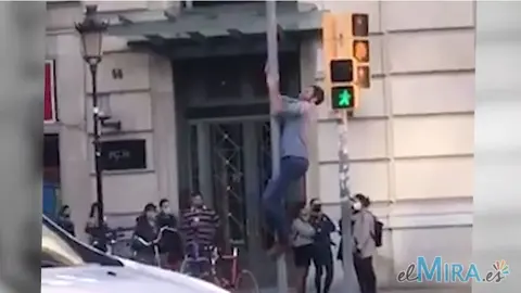 Un catalán fracasa al subir a una farola a arrancar la bandera de España